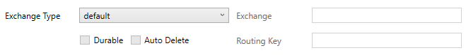 Selecting this exchange type disables the Exchange section (Exchange, Routing Key, Durable, and Auto-delete properties).