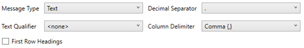 If Text has been selected, confirm the Decimal Separator, Text Qualifier, Column Delimiter, and if the first row of the message included column headings.
