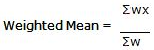 In other words: multiply each weight w by its matching value x, sum that all up, and divide by the sum of weights.
