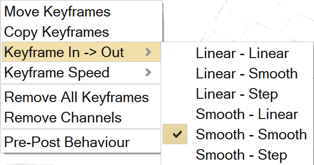 | Keyframe In → Out | This option defines how the channel is interpolated going