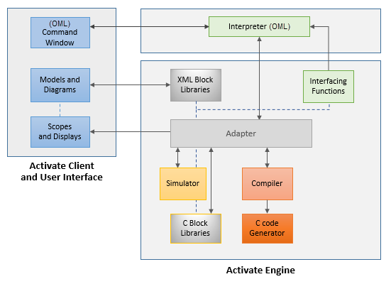 Activate relies heavily on OML for creating and modifying block definitions; creating, editing and running models; manipulating elements inside of diagrams; customizing the user interface; and defining functions for the pre- and post-processing of data required for simulating models.