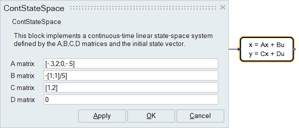 you can see in the ContStateSpace block dialog: