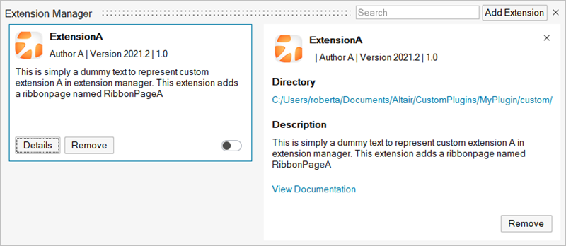 <username>/Documents/Altair/CustomPlugins/<extensionfolder>/custom.