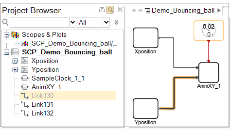 every selected link in the block diagram is also selected in the Project Browser. The following