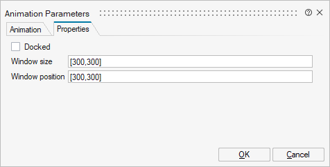 the animation window including docking state, size and position.