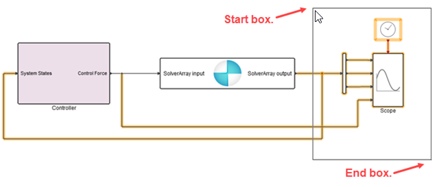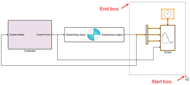 Select all objects in the diagram. Press Ctrl+A. If nothing is selected, Ctrl+A selects all ojects in the diagram. But if one object is selected, for example a block or a link, pressing Ctrl+A selects all ojects of the same type in the diagram, for example all blocks or all links.