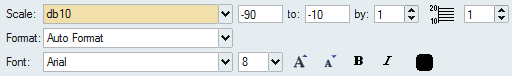 7. On the Y-axis block, right-click. In the floating panel that appears, from the Scale drop down list, select db10.