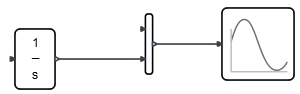 7. Link the remaining blocks in the diagram as you see in the following figure. Note the bend in the link between the first two blocks. If your link is straight, create the bend by selecting the SineWaveGenerator block and moving it upward so that it is higher than the Integral block.