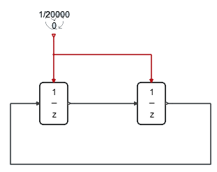 represented by the Integral block. In discrete-time, transfer functions are obtained by applying the Z transform to difference equations. The special case of a unit delay operator is represented by the DiscreteDelay block. This block is usually activated periodically by a SampleClock block, which fixes the period and phase of the activations. Discrete-time signals are updated at activation times and remain constant from one activation to the next.