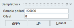 5. On the SampleClock block, double-click. In the block dialog, for the Sample period, enter: 1/20000, and click OK.