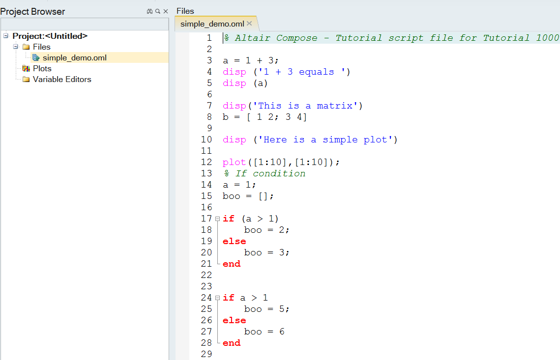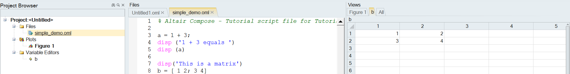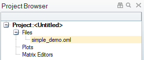 By default, the Project Browser is displayed in the left pane. This helps you manage matrices, plots, and projects.