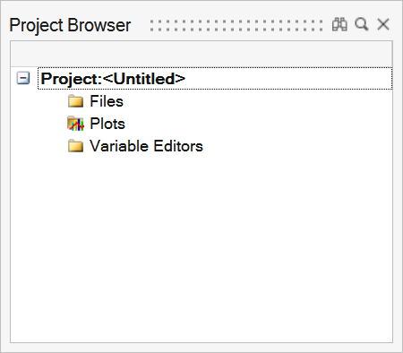 The Project Browser displays all open files and plots within the current session contents in a hierarchical tree.
