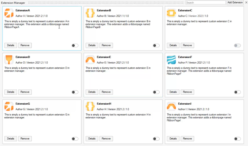 Use the Extension Manager to create custom extensions, load extensions automatically, and add custom documentation specific to your defined features.