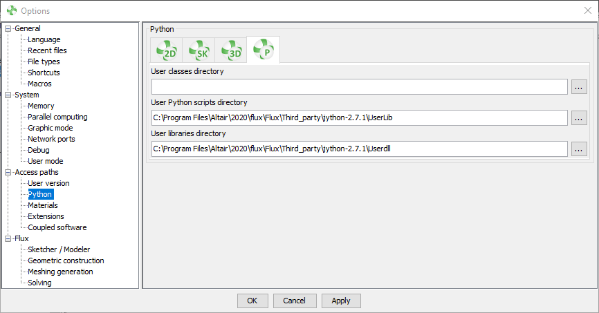 Look at Flux Supervisor Options and ensure that you have configured the User libraries directory for the module (2D,3D, Skew, PEEC) you are trying to use, even if you do not want to use NumPy for this specific module.