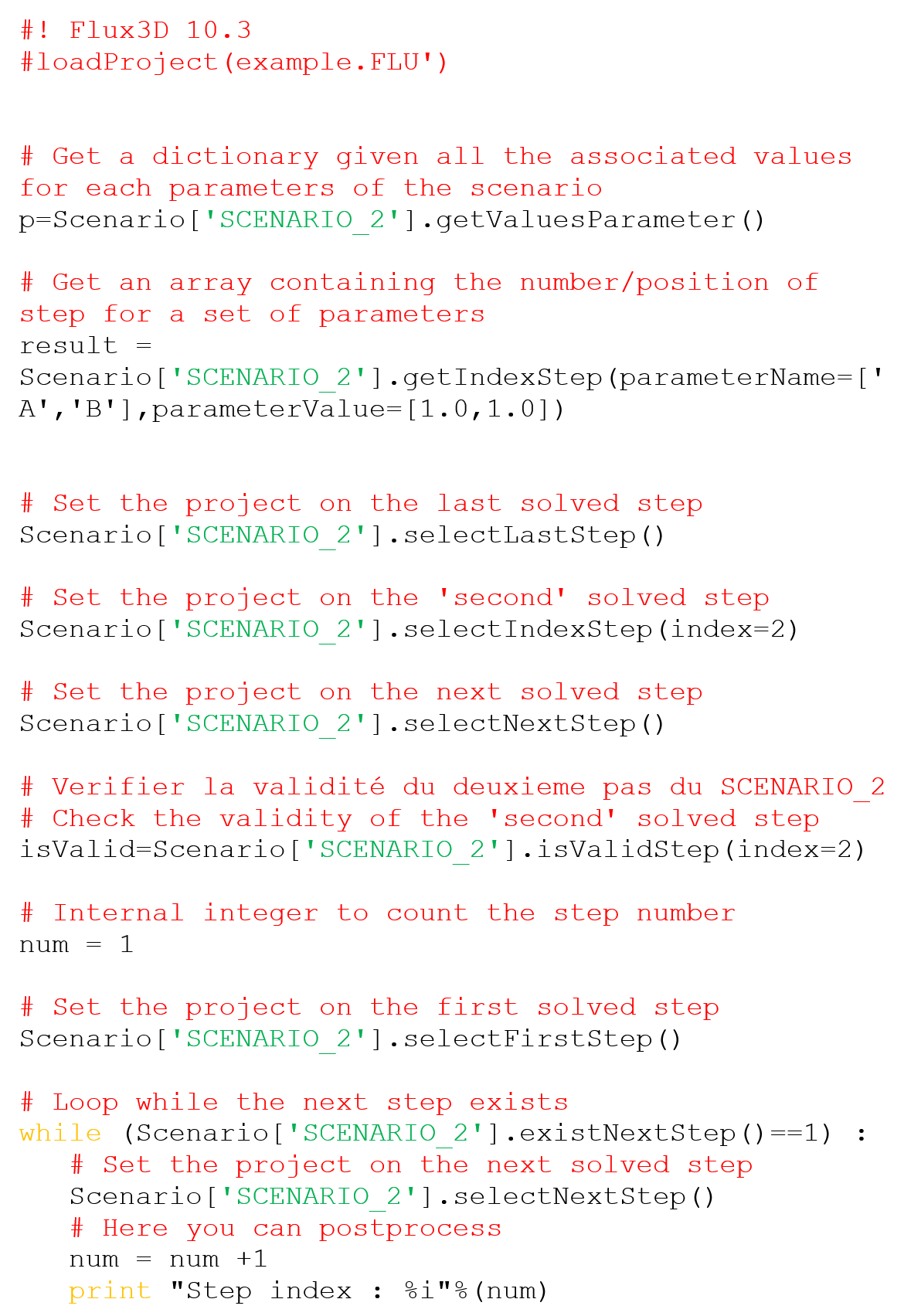 Some API have been implemented to allow the user to select steps to quickly postprocess. All methods have been added on the structure SCENARIO.