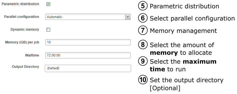The amount of memory to allocate per job can also be specified using the input Memory (GB) per job.