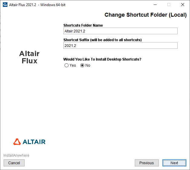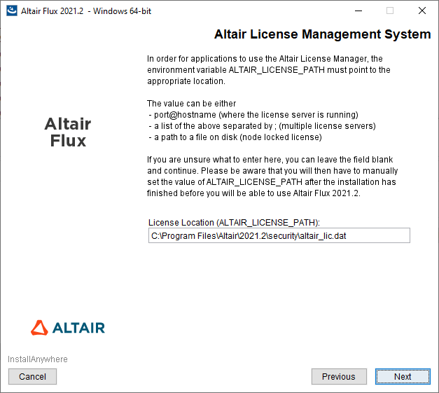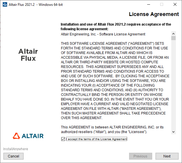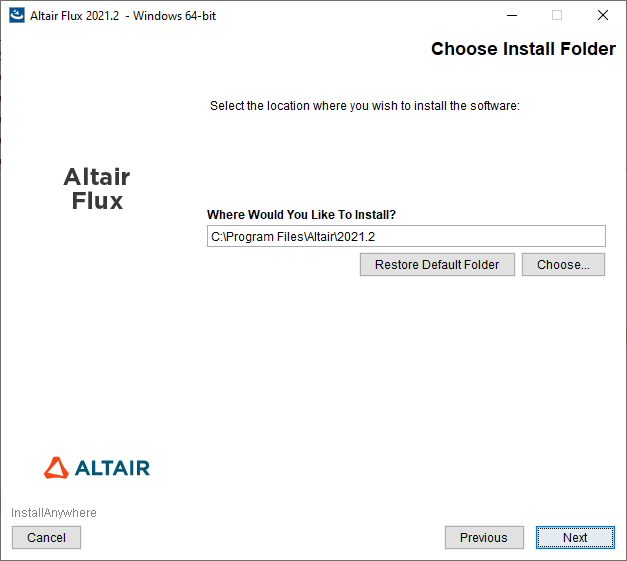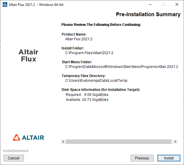 - with a user account: the installation directory is C:\Users\<username>\Altair\2021.2
