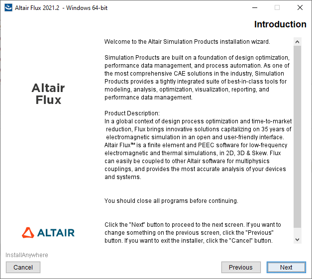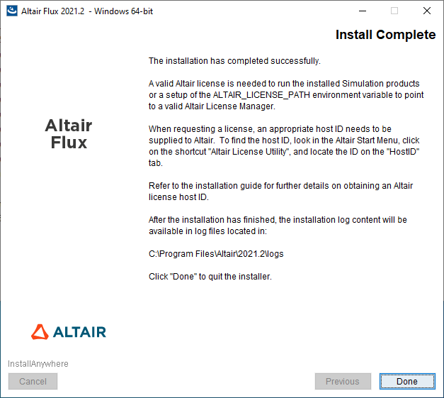 - with an administrator account: the installation directory is C:\Program Files\Altair\2021.2