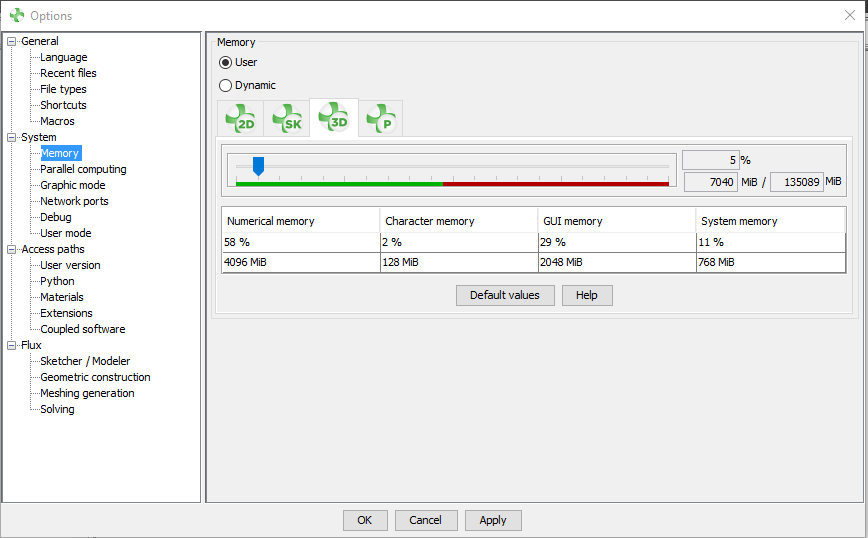 The first version of Dynamic memory management has been integrated in Flux 2020 in Beta version. By default, User (or static) memory was activated in supervisor options. For Flux 2021, we continued to work on algorithms to improve the robustness and performance of Flux with the Dynamic memory mode.