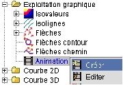 - pour l'ensemble des pas paramétrique/transitoire : représentation graphique pour l'ensemble des pas et visualisation des images dans une nouvelle fenêtre (commande Animation )