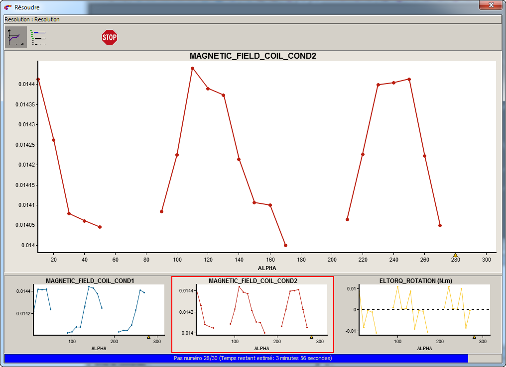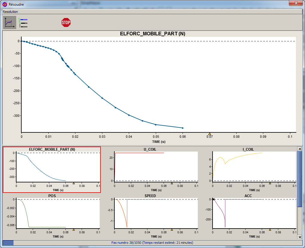 Ce contexte est un aperçu des résultats en cours de résolution. Les grandeurs affichables sont visualisables sur plusieurs graphes sur lesquels un certain nombre d’actions sont possibles. (voir les blocs suivants)