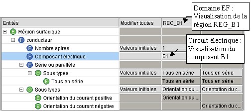Dans cette table, les zones qui permettent la visualisation des régions (de type conducteur bobiné) et des composants électriques (de type conducteur bobiné) sont mise en évidence dans la figure ci-dessous.