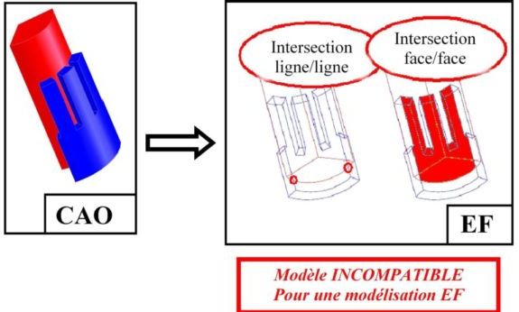 En général, les fichiers CAO utilisés pour la production ou la visualisation d'un prototype ou d'un produit ne sont pas forcément adaptés à la modélisation éléments finis. Il est souvent nécessaire « d'accompagner » le transfert de données du monde de la CAO au monde éléments finis.