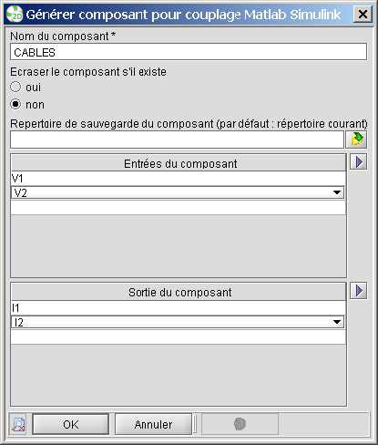 La boîte de dialogue Générer composant pour couplage Matlab Simulink est présentée ci-dessous :