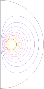 Par exemple, le nombre de régions de types conducteurs bobinés requit pour représenter complètement le bobinage de la Figure 3 dans Flux2D est affecté par l’existence de symétries de type champ magnétique tangent (représentant les conditions aux limites sur l'axe de la bobine) comme ci-dessous :