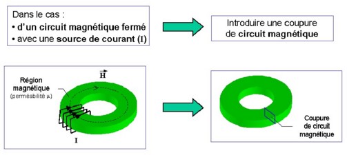Une coupure de circuit magnétique est introduite dans un dispositif lorsqu'il est nécessaire de s'affranchir d'un problème de connexité magnétique (en 3D).