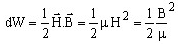 La densité d'énergie magnétique emmagasinée en un point, s'exprime à l'aide de B et H par la relation :