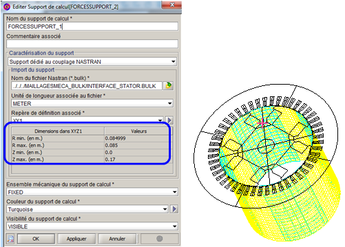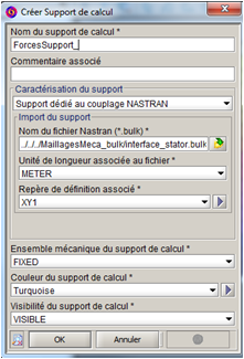 Les étapes de création du support défini par un maillage importé de machine tournante sont décrites ci-dessous. Des images de la boite de création du support sont également disponibles.