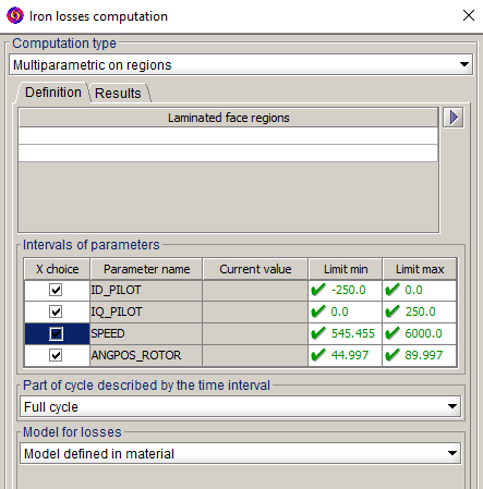 - Sélectionner les régions feuilletées pour le calcul de pertes fer