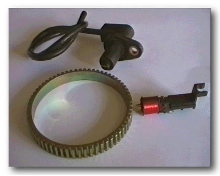 Lors de la rotation de la roue, le champ magnétique change à chaque fois qu'une dent est en face de la tête du capteur, créant ainsi un signal de tension analogue pouvant être mesuré.