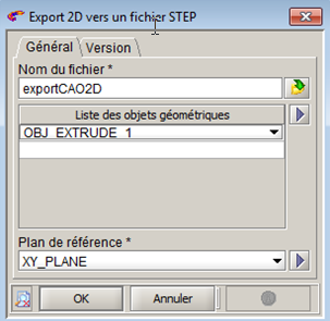 L'utilisateur choisit un plan de référence et les objets dont il souhaite exporter la coupe.