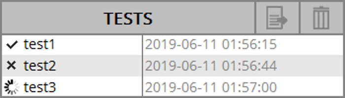 Une fois l’exécution du test finie, le test apparaît en bas à droite. Plusieurs tests peuvent être exécutés sur un composant, dans ce cas ils sont listés: