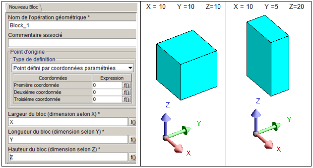 Voici l'exemple d'un bloc dont les dimensions sont paramétrées.