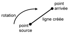 Une ligne peut être créée par extrusion d'un point existant à l'aide d'une transformation. Cette transformation permet d'obtenir le point d'arrivée à partir du point source.