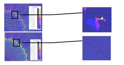 La figure ci dessous montre sous quelle forme est retranscrite la carte d'erreur pour les applications 2D. L'utilisateur averti remarquera également qu'à échelle constante, l'erreur diminue en fonction de la densité de maillage.