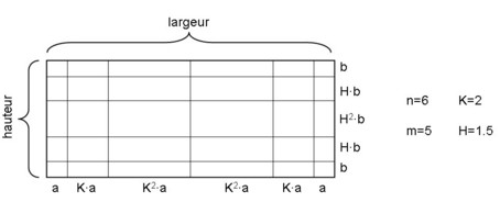 - les concentrations K (selon la largeur) et H (selon la hauteur) de ces éléments. Ces valeurs, qui doivent être positives, représentent le rapport entre la taille de deux éléments successifs.