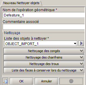 - L'opération DEFEATURE_1 a été ajoutée dans la liste des opérations géométriques liées à l'objet nettoyé.