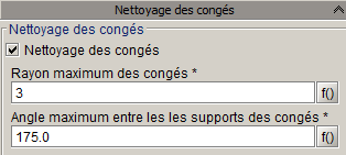 Chaque type (congé, chanfrein, trous) dispose d'un bouton qui permet de déplier les paramètres à définir et à appliquer au nettoyage