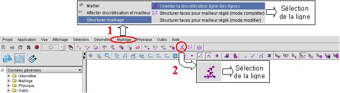 Pour activer la commande Orienter la discrétisation ligne des lignes, qui nécessite la sélection de données, choisir l'une des méthodes sur la figure suivante :