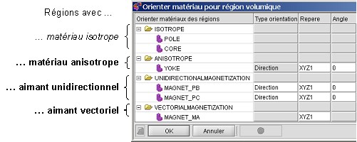 S'il existe des régions avec matériau anisotrope, alors pour chacune des régions à traiter :