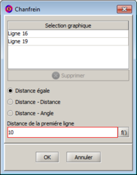 Après l'activation de ce mode, une boite de dialogue contenant tous les champs et options nécessaires pour appliquer un chanfrein apparaît.