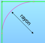 | 2 | Sélection graphique des 2 segments constituant l'arête à arrondir |