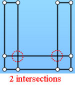 | Un segment en intersection avec un arc | L'intersection détectée fait apparaître en surbrillance verte toutes les lignes concernées |