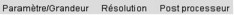 Accès aux différents menus : Paramètre/Grandeur, Résolution, Post processeur |