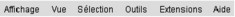 Accès aux différents menus : Affichage, Vue, Sélection, Outils, Extensions, Aide |