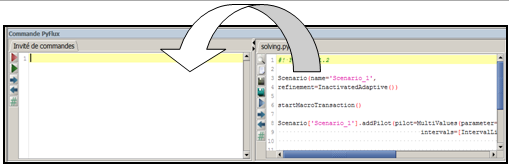- en mode interactif, en direct dans la fenêtre Flux (éditeur python)